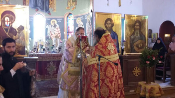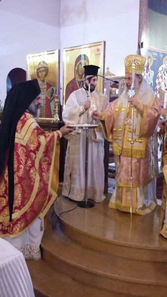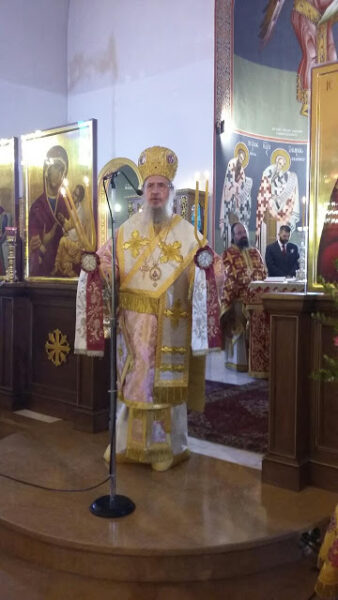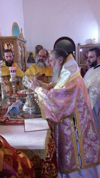 O Θεοφιλέστατος Επίσκοπος Θαυμακού και Καθηγούμενος της Ι.Μ. Ασωμάτων Πετράκη, κ. Ιάκωβος, ιερουργών στον Ιερό Ναό Αγίου Γεωργίου Παπάγου, κατά τις 3 Νοεμβρίου 2019.