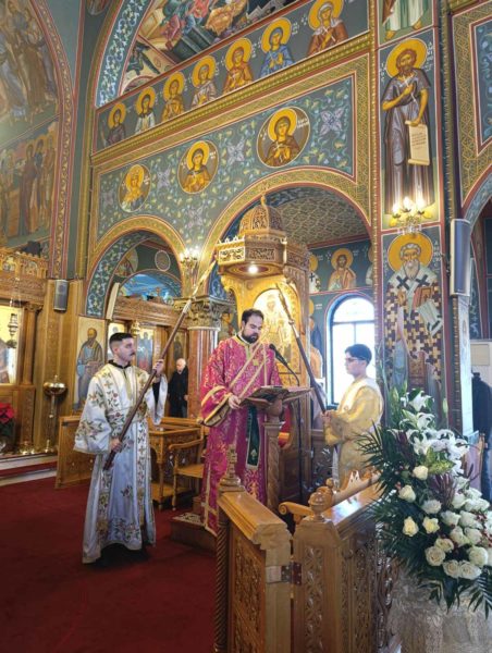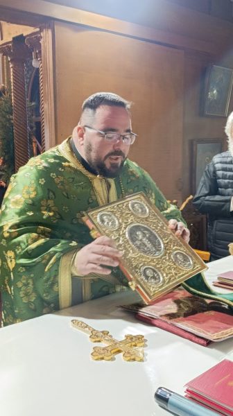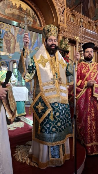 Ο επίσκοπος στην ομιλια του αναφέρθηκε στο “υιό της Αναστάσεως”, όσιο Σεραφείμ και στην αναστάσιμη χαρά που προέβαλε με τον λόγο και την ζωή του, τονίζοντας ότι το όνομα Σεραφείμ σημαίνει πυρφόρος. Ευχήθηκε στον εορτάζοντα πρόεδρο του εκκλησιαστικού συμβουλίου αρχιμανδρίτη Σεραφείμ Δημητρίου να είναι κι εκείνος πυρφόρος και να τον χαριτώνει ο Θεός ώστε να συνεχίσει με τον ίδιο ζήλο και την ίδια χαρά που βιώνει και μεταφέρει στους γύρω του, την διακονία στον συνάνθρωπο και στην Εκκλησία.