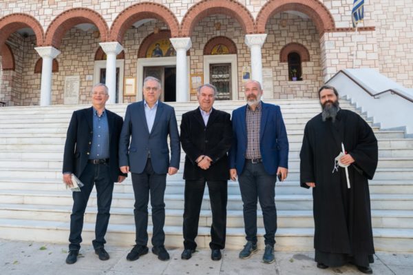 Μετά το πέρας της Θείας Λειτουργίας ενημερώθηκε για τις δράσεις της ενορίας και ξεναγήθηκε στο έργο αποπεράτωσης του πνευματικού κέντρου που θα καλύψει τις ανάγκες των κατηχητικών της ενορίας.