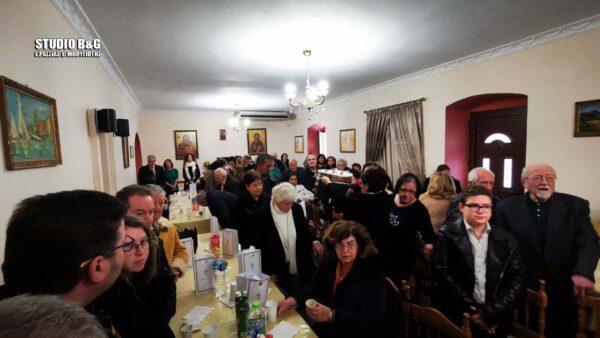 Μέσα σ’ αυτό το πνεύμα συναλληλίας και σε μία κατάμεστη αίθουσα εκδηλώσεων, του Ιερού ναού Ευαγγελιστρίας Ναυπλίου, οι εθελοντές και οι φίλοι του Συσσιτίου του ενοριακού ναού έκοψαν την καθιερωμένη Πρωτοχρονιάτικη πίτα τους σήμερα Κυριακή 12 Ιανουαρίου 2020.