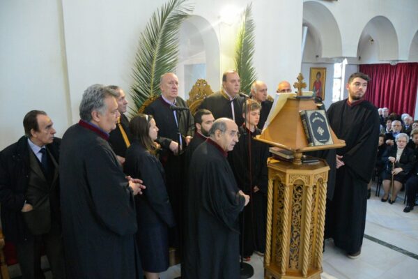 Τα ιερά αναλόγια κόσμησαν ο Πρωτοψάλτης του Ιερού Ναού κ. Στυλιανός Ζαχαρίου και ο λαμπαδάριος κ. Δημήτριος Βαμβακόπουλος, μαζί με τους συνεργάτες τους.