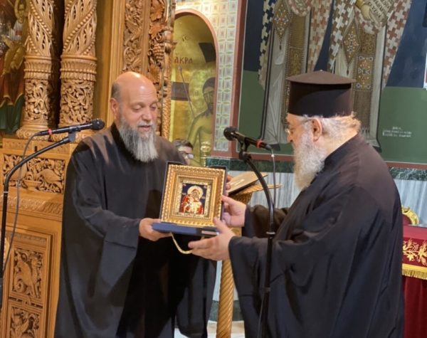 Στο τέλος της ομιλίας ο Προϊσταμενος του Ιερού Ναού, Πανοσιολ. Αρχιμανδρίτης π. Χριστόδουλος Κοτσίφης, ευχαρίστησε τον π. Αντίπα και του προσέφερε ως ευλογία, ένα αντίγραφο της Παναγίας της Παρηγορητρίας ενώ ο Ομιλητής του αντιπροσέφερε το βιβλίο του με τίτλο «Το βιβλίο της Αποκαλύψεως».