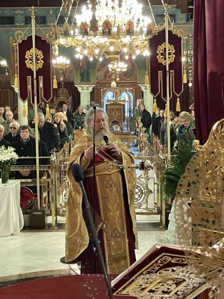 Σήμερα, συνέχισε ο π. Θεμιστοκλής, στον απόηχο της μεγάλης αυτής εορτής καλέσαμε τον σεβαστό μας Πανοσιολογιώτατο Αρχιμανδρίτη π. Μεθόδιο Κρητικό, Ηγούμενο της Ι. Μονής Αναστάντος Χριστού Πειραιώς. Ο Γέροντας Μεθόδιος πάντοτε με πολλή αγάπη έρχεται και συμμετέχει στις γιορτές μας, πράγμα για το οποίο χαιρόμαστε και σας ευχαριστούμε, π. Μεθόδιε, για την αποδοχή της προσκλήσεώς μας. Έχετε την εύχή και τις ευλογίες του Μακαριωτάτου Αρχιεπισκόπου Αθηνών και πάσης Ελάδος, ο οποίος επιδαψιλεύει αυτές τις γιορτές και χαίρεται, όταν κα]οι ομιλητές ανταποκρίνονται και βοηθούν στο γεώργιον της Εκκλησίας μας.