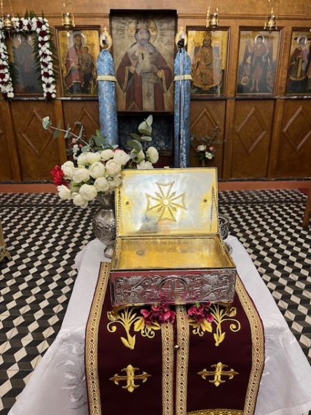 Την κύρια εόρτια ημέρα, Πέμπτη 5 Δεκεμβρίου 2024, τελέστηκε ο Όρθρο και στη συνέχεια προεξήρχε στην Θεία Λειτουργία ο Εφημέριος της Ενορίας Αγίου Πρεσβύτερο π. Ιωάννης Παπακοσμας πλαισιωμένος από τον Εφημέριο Κεραμιας Πρεσβύτερο π. Αθανάσιο Γερογιάννη.