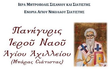Πανηγυρίζει ο Ιερός Ναός Αγίου Αχιλλείου στη Μπάρα Σιάτιστας το Σάββατο 14 Μαΐου και την Κυριακή 15 Μαΐου.