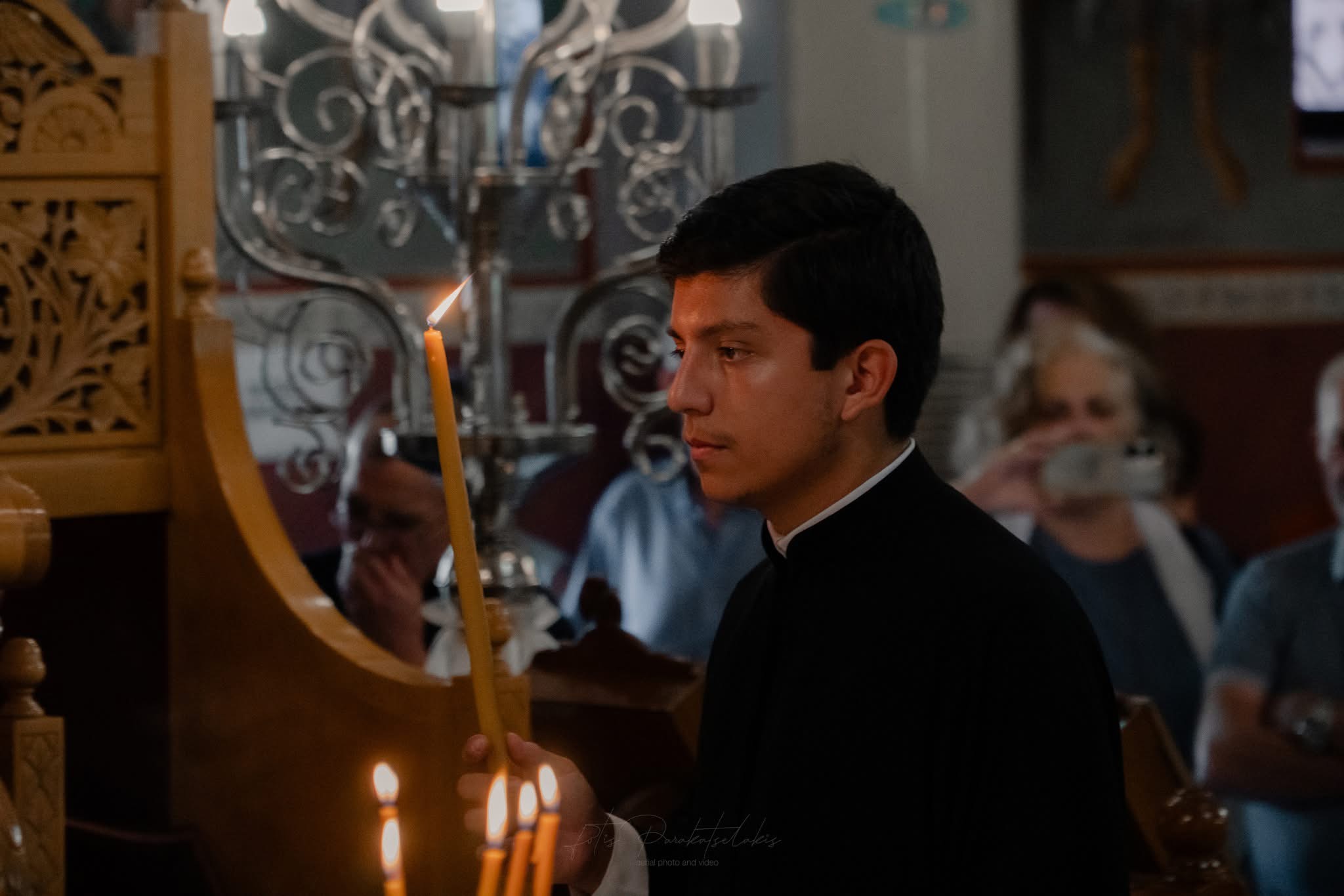 Αμέσως μετά, τελέστηκε με μεγαλοπρέπεια Μέγας Πανηγυρικός Εσπερινός, στον οποίο έλαβαν μέρος όλοι οι προαναφερθέντες κληρικοί, καθώς και ο π. Ιωάννης Παπακοσμάς, Εφημέριος του Ιερού Ναού Αγίου Γεωργίου Αγίου ενώ συμπροσευχομενοι ήταν και οι Πρωτοπρεσβύτερος π. Νικόλαος Σακκαγιάννης, Εφημέριος του Ιερού Ναού Αγίων Αναργύρων Λουτρών Αιδηψού, Οικονόμος π. Ευστάθιος Αναγνώστου, Εφημέριος του Ιερού Ναού Κοιμήσεως της Θεοτόκου Ιστιαίας. Στο δεξιό αναλόγιο έψαλλε με κατάνυξη ο κ. Δημήτριος Παπαβασιλείου, ενώ στο αριστερό συμμετείχαν οι νεαρές κοπέλες του Κατηχητικού Σχολείου της Ενορίας.