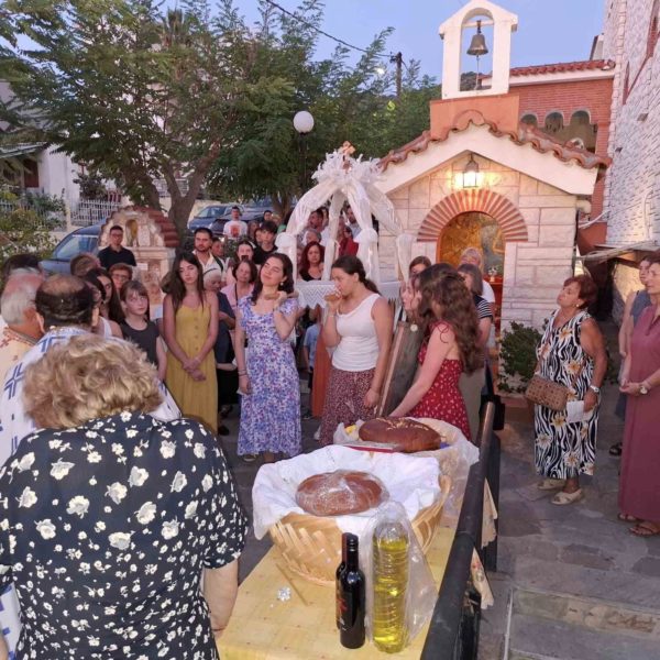 Όπως κάθε χρόνο, τελέστηκε και η Δέηση ενώπιον του προσκυνηταρίου της Παναγίας της Προυσιώτισσας και του Αγίου Ονουφρίου, στον προαύλιο χώρο του Ναού, όπου τελέστηκε και η αρτοκλασία.