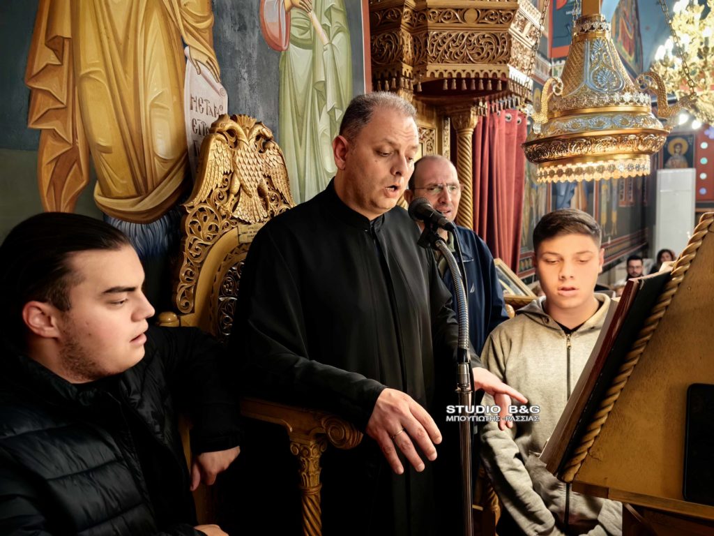 Κατά τον εσπερινό έψαλε ο λαμπαδάριος του καθεδρικού Ιερού ναού Αγίου Πέτρου Αργούς Ιωάννης Χαβιαρλής και ο Ιεροψάλτης του Ναού Νικόλαος Κιντής.