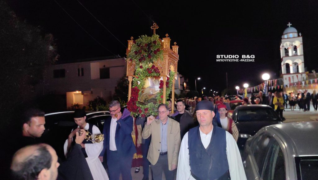 Ακολούθησε η περιφορά της εικόνας και των Ιερών Λειψάνων του Αγίου Γεωργίου σε όλο το χωριό προς ευλογία των κατοίκων.