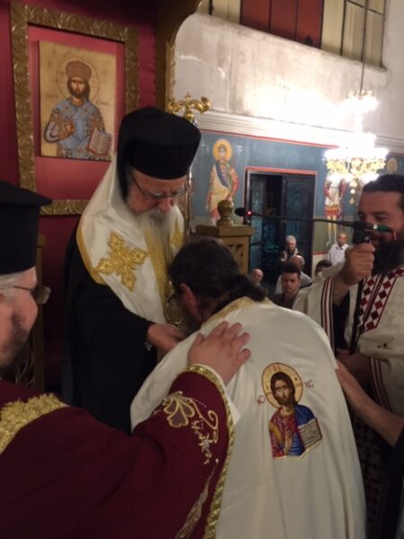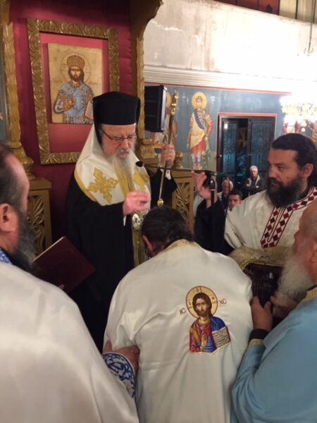Στο τέλος του Εσπερινού ο Σεβασμιώτατος κ.Κοσμάς, απένειμε το οφφίκιο του Πρωτοπρεσβυτέρου στον εφημέριο του Ιερού Ναού π.Χριστόφορο Δαβράζο.