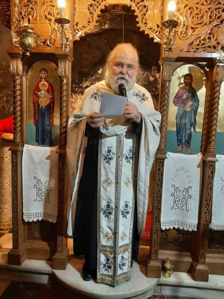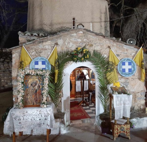Πριν την έναρξη του Πανηγυρικού Εσπερινού αναπέμφθηκε δέηση ενώπιον της Ιεράς Εικόνος της Παναγίας από τον Οικονόμο π. Ιωάννη Κετσετζή, Εφημέριο της Ενορίας των Καθενών.