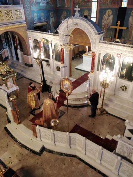 Μετά το τέλος της Αναστάσιμης Θείας Λειτουργίας τελέσθηκε η ακολουθία του Μικρού Αγιασμού κατά την τάξη της Διακαινησίμου Εβδομάδος.