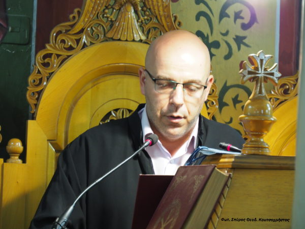 Το δεξιό αναλόγιο διακόνησε ο πρωτοψάλτης του Ιερού Προσκυνηματικού Ναού Αγίου Ευαγγελιστού Λουκά Θηβών κ. Αλέξανδρος Φίλης.