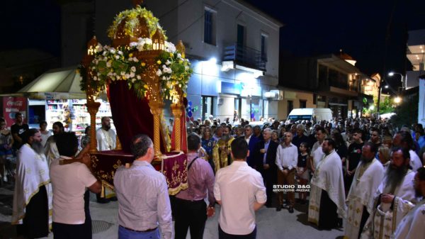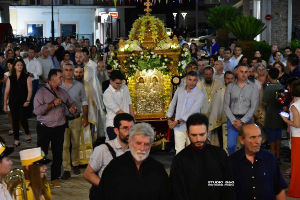Μετά το πέρας του Εσπερινού ακολούθησε η λιτάνευση της Ιερής Εικόνος, παιανιζούσης της Φιλαρμονικής του Δήμου Ναυπλιέων.