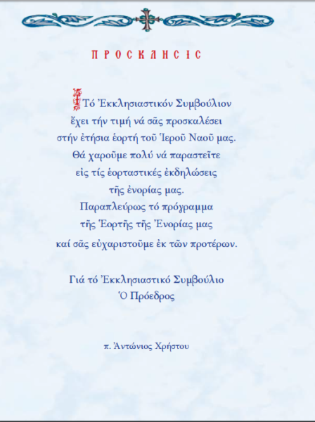 Δείτε την πρόσκληση από τον εφημέριο π. Αντώνιο Χρήστο: