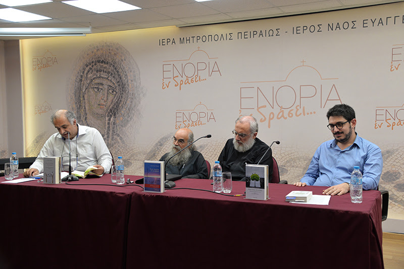 Στο πλαίσιο του προγράμματος «ΕΝΟΡΙΑ εν δράσει…», του Ιερού Ναού Ευαγγελιστρίας Πειραιώς, το Βιβλιοπωλείο Παρουσία και οι Εκδόσεις Αρμός παρουσίασαν τα βιβλία του π. Βασιλείου Θερμού: «Φυγή προς τα εμπρός», «Μουσικές για την ψυχή και για τον κόσμο», «Σώμα θαμμένο και ζωηφόρο», την Παρασκευή 4 Οκτωβρίου, στο Πνευματικό Κέντρο του Ναού.