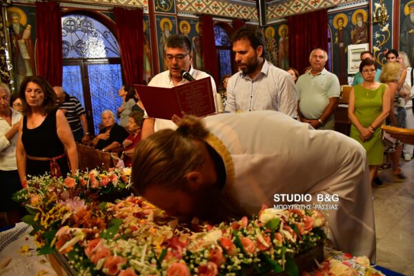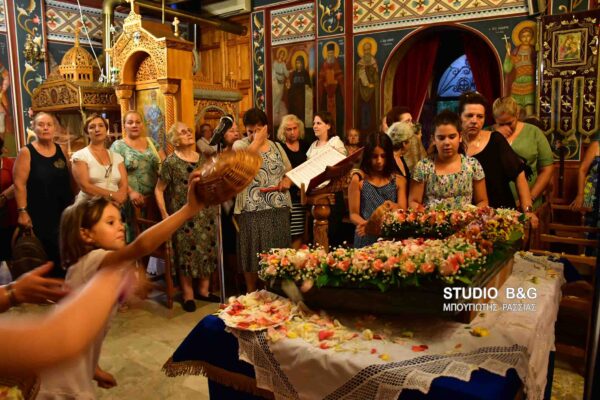 Πλήθος κόσμου παρακολούθησε την παράκληση και τα εγκώμια στην Υπεραγία Θεοτόκο επί τη εορτή της Κοιμήσεως της Θεοτόκου στον Ιερό ναό του Αγίου Νεκταρίου στη πόλη του Ναυπλίου, Τρίτη 13 Αυγούστου 2019.