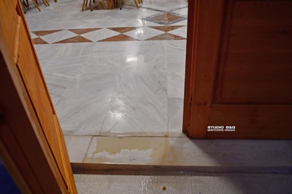 Έμπασε νερά στην κυριολεξία, για ακόμα μία φορά, το καινούργιο κτήριο του Συσσιτίου του Ιερού ναού Ευαγγελιστρίας Ναυπλίου από την τελευταία βροχόπτωση.