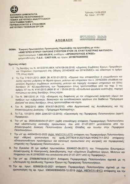 Πάντως μέχρι και σήμερα η κραυγή των εθελοντών, ενοριτών και του εφημέριου π. Ελευθέριου Μίχου, του Ιερού Ναού Ευαγγελίστριας Ναυπλίου, δεν έχουν εισακουστεί και το κτήριο με την πρώτη βροχή πλημμυρίζει.