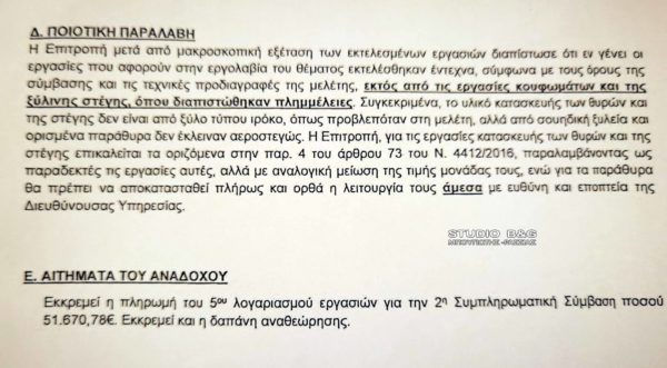 Πριν μερικών ημερών σύμφωνα με χαρτί που έστειλε η Περιφέρεια στον ιερέ, αναγνωρίζει τα προβλήματα που έχουν δημιουργηθεί με την βροχή και το διαφορετικό υλικό που έχουν φτιαχτεί τα ξύλινα παράθυρα και η στέγη του κτηρίου.