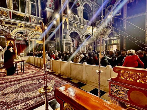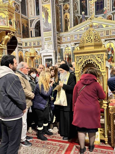 Το απόγευμα της Τρίτης 23 Ιανουαρίου 2024 ο Ιερός Ναός κατακλύστηκε από τους πιστούς που ήρθαν να ακούσουν την ομιλία του Γέροντα Νεκταρίου Μουλατσιώτη και να προσκυνήσουν τα Ιερά Σεβάσματα. Ο Γέροντας Νεκτάριος μετά το πέρας της ομιλίας του, σταύρωσε όλους τους πιστούς με το Τίμιο Ξύλο, το οποίο έχει βοηθήσει χιλιάδες κόσμο σε διάφορα προβλήματα είτε σωματικά είτε και ψυχικά.