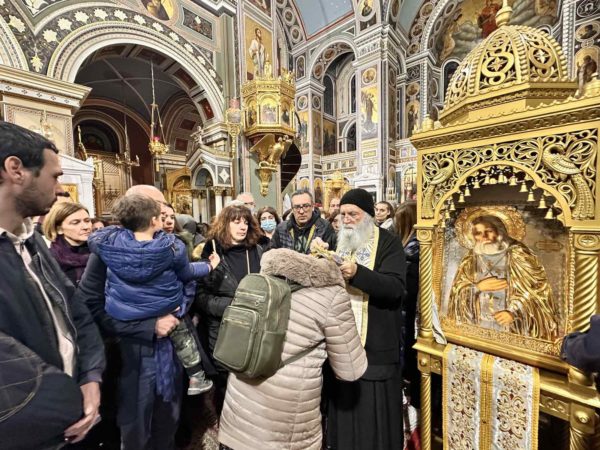 Πλήθος πιστών προσκυνούν τον Άγιο Σεραφείμ τον Σάρωφ στον Ι.Ν. Αγίων Κωνσταντίνου και Ελένης Πειραιώς