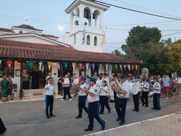 Μετά το πέρας του Πανηγυρικού Eσπερινού ακολούθησε η λιτανεία της εικόνας της Αγίας Κυριακής την οποία συνόδεψαν παιανίζοντας η Φιλαρμονική των Δήμου Χαλκιδέων.