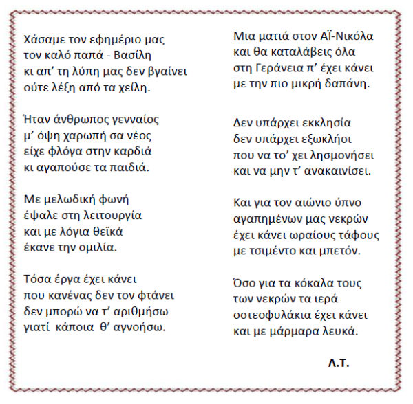 Ποίημα ενός συμπολίτη για τη μνήμη του πατρός Βασιλείου
