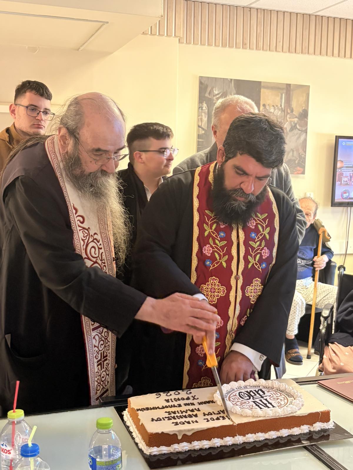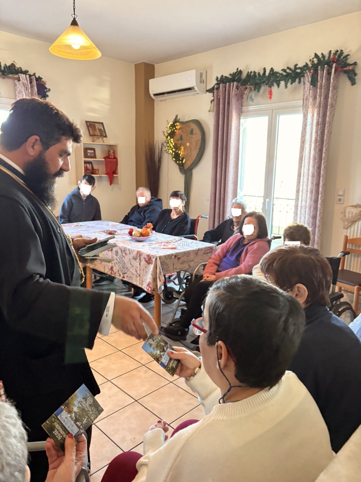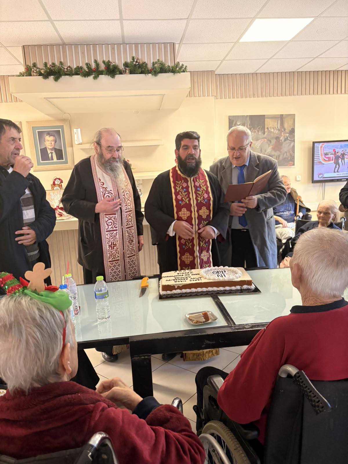 Τελουμένου του Ιερού Σαρανταλείτουργου των Χριστουγέννων και στο πλαίσιο των κατ΄οίκον επισκέψεων των ασθενών, οι τρόφιμοι των Ιδρυμάτων της Ενορίας, μετέλαβαν των Αχράντων Μυστηρίων, ενώ την ημέρα της Πρωτοχρονιάς ο Προϊστάμενος της Ενορίας Πρωτ. π. Δημήτριος Ατματζίδης, συνοδευόμενος από μέλη του Εκκλησιαστικού Συμβουλίου, τον Πρωτοψάλτη του Ναού κ. Σεραφείμ Κυρίτση και τα παιδιά της Ενορίας, επισκέφθηκαν τα Ιδρύματα,, ευλόγησαν την Αγιοβασιλόπιττα, έψαλαν τα κάλαντα και διένειμαν ευλογίες και δώρα στους τροφίμους και στο προσωπικό των Ιδρυμάτων, συνοδευόμενα από τις ευχές του Σεβασμιωτάτου κ. Συμεών και όλων των πιστών της Ενορίας.