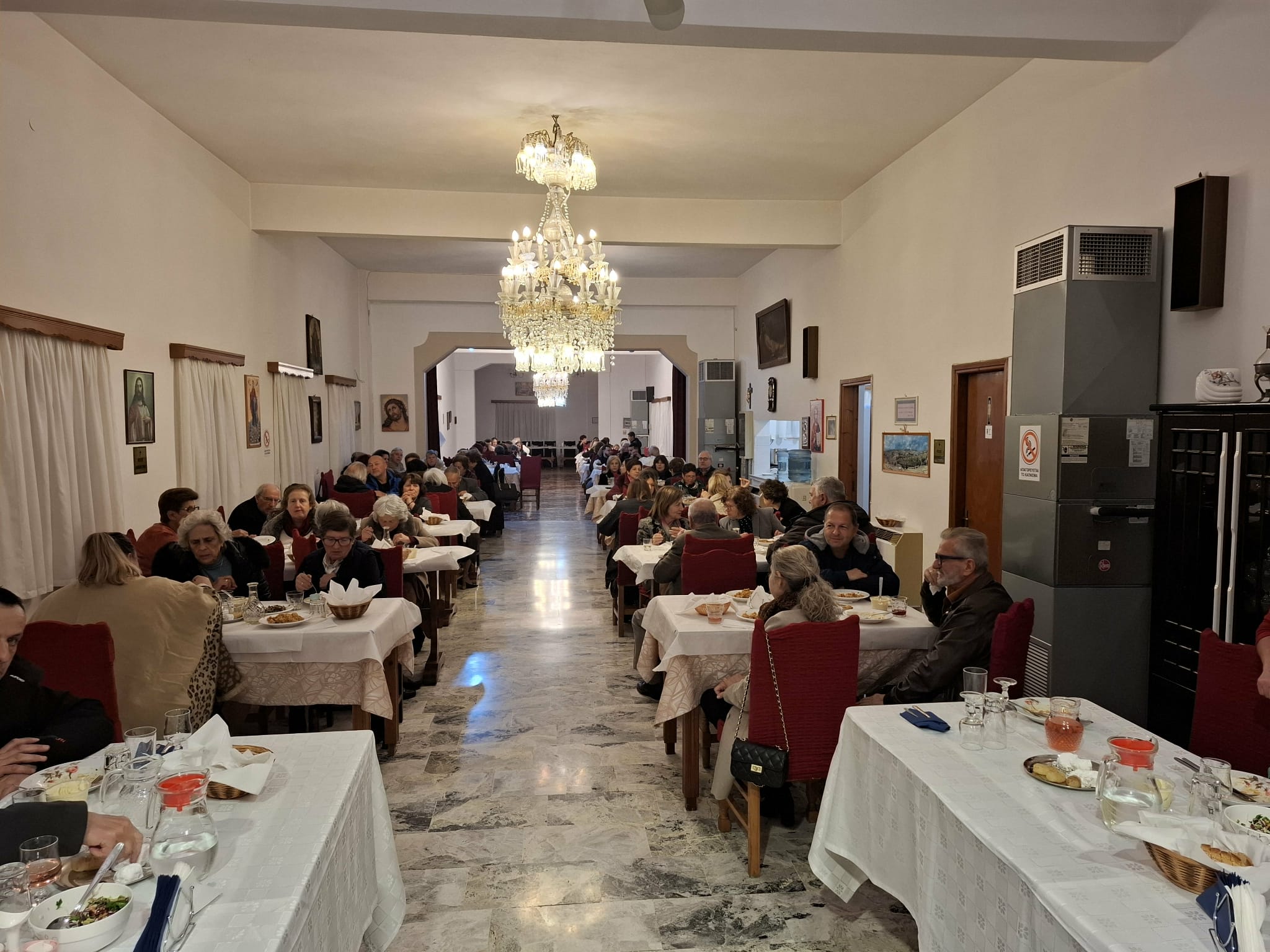 Μετά το πέρας της αγρυπνίας ακολούθησε εόρτιος τράπεζα στο πνευματικό κέντρο του Ιερού Ναού μερίμνη του εφημερίου και του εκκλησιαστικού συμβουλίου.