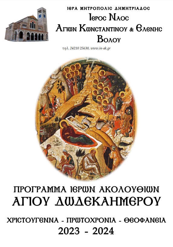 Το πρόγραμμα των Ιερών Ακολουθιών του Αγίου Δωδεκαημέρου γνωστοποιεί ο Ιερός Ναός Αγίων Κωνσταντίνου και Ελένης Βόλου.