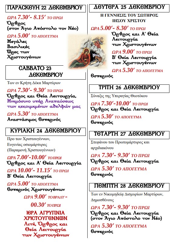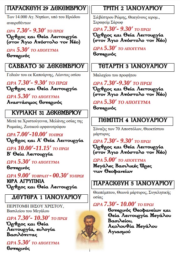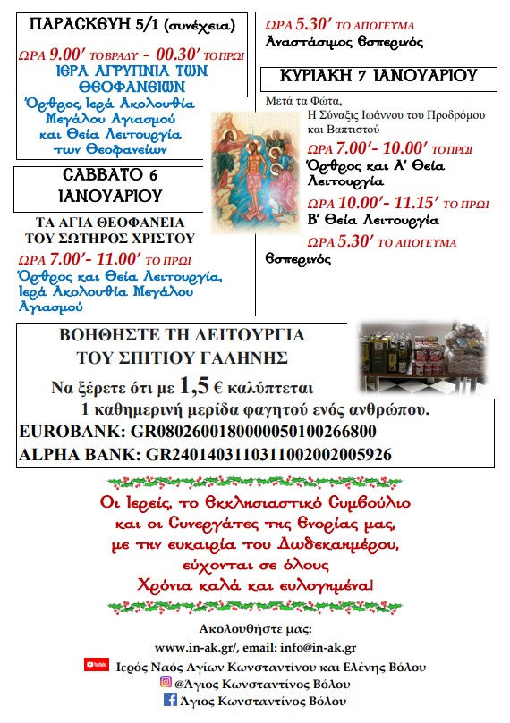 Πρόγραμμα Ακολουθιών του Αγίου Δωδεκαημέρου στον Ιερό Ναό Αγίων Κωνσταντίνου και Ελένης Βόλου