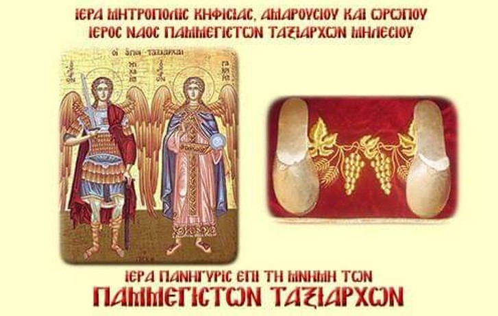 Ενορίες 04 Νοεμβρίου, 2022 Πρόγραμμα πανήγυρης για τη μνήμη των Παμμεγίστων Ταξιαρχών στο Μήλεσι Ωρωπού Διαδώστε: Μια σειρά από εορταστικές εκδηλώσεις θα πραγματοποιηθούν στον Ιερό Ναό Παμμεγίστων Ταξιαρχών στο Μήλεσι Ωρωπού στο πλαίσιο της εορτής των πολιούχων της κώμης. Διαδώστε: