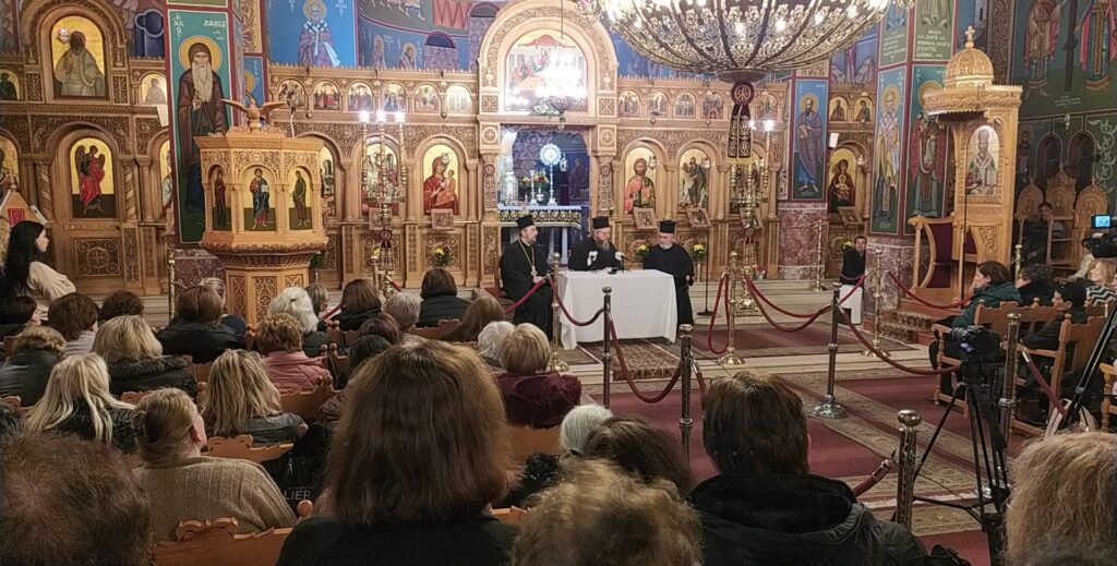 Πριν από την ομιλία τελέστηκε το Ιερό Μυστήριο του Ευχελαίου, ενώ οι πιστοί είχαν την ευκαιρία να προσκυνήσουν τμήμα του Λειψάνου της Αγίας Αναστασίας της Ρωμαίας.