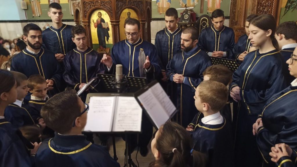 Για μια ακόμη Κυριακή, τριάντα (30) μικροί και μεγαλύτεροι χορωδοί της Παιδικής και Νεανικής Βυζαντινής Χορωδίας «Ακαδημία Ψαλτικής Ειρμός», με τις αγγελικές μελωδίες και τις παιδικές τους φωνές, ερμήνευσαν τους ύμνους της Θείας Λειτουργίας, συνεπικουρώντας το έργο των εφημερίων «προς καταρτισμό των πιστών για το έργο της διακονίας, ώστε να οικοδομείται το σώμα του Χριστού» (Εφ.4:12), όπως αναφέρει και η αποστολική περικοπή της Κυριακής μετά τα Φώτα.