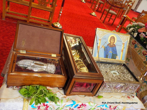 Στον ανωτέρω Ιερό Ναό τίθενται σε προσκύνηση και ευλογία των πιστών, Ιερά Λείψανα των Αγίων Αναργύρων, της Τιμίας Χειρός του Αγίου Ιερομάρτυρος Ελευθερίου και απότμημα Ιερού Λειψάνου της Αγίας Ματρώνας της Χιοπολίτιδος, μέχρι και την Τρίτη 26 Οκτωβρίου στις 18:30.