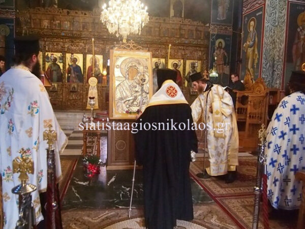 Εκεί την παρέλαβε ο Μητροπολίτης Σισανίου και Σιατίστης κ.κ. Αθανάσιος, ο οποίος έψαλε δέηση εντός του Ιερού Ναού και στη συνέχεια τον παρακλητικό κανόνα στην Υπεραγία Θεοτόκο.
