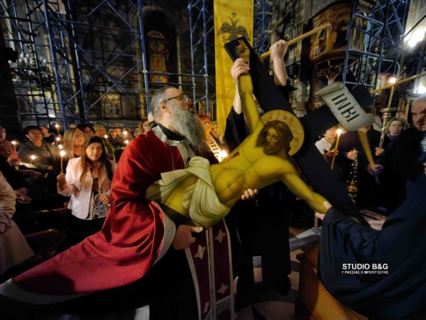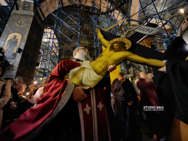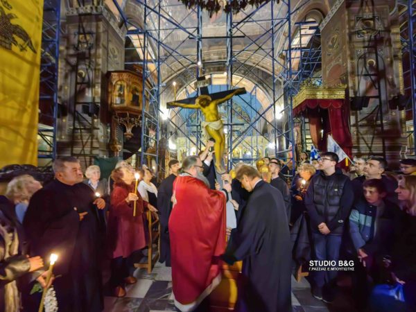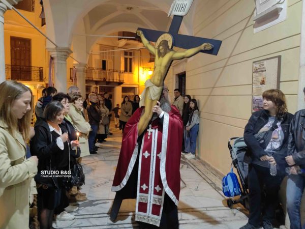 Σε κλίμα ευλάβειας και βαθιάς κατάνυξης, ντόπιοι και επισκέπτες του Ναυπλίου το απόγευμα της Μεγάλης Πέμπτης 17 Απριλίου 2025 γέμισαν τους Ιερούς Ναούς της πόλης, για να παρακολουθήσουν την πορεία του Θεανθρώπου Ιησού Χριστού προς το σταυρικό μαρτύριο του Γολγοθά.