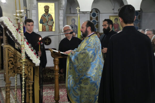 Την ακολουθία τέλεσε ο Πρωτοπρεσβύτερος π. Παλαιολόγος Μάνος, Εφημέριος του Ιερού Καθεδρικού Ναού της του Θεού Σοφίας Θεσσαλονίκης, ο οποίος υπηρετεί και στα Γραφεία της Ιεράς Μητροπόλεως με την ευλογία του Παναγιωτάτου Μητροπολίτου Θεσσαλονίκης κ. Ανθίμου. Άλλωστε, ο π. Παλαιολόγος είναι γνώριμος στο εκκλησίασμα του Αγίου Φωτίου αφού χρημάτισε στον Ναό Προϊστάμενος για να παραδώσει την «σκυτάλη» στον Αρχιμανδρίτη Μακάριο Τσιμέρη.