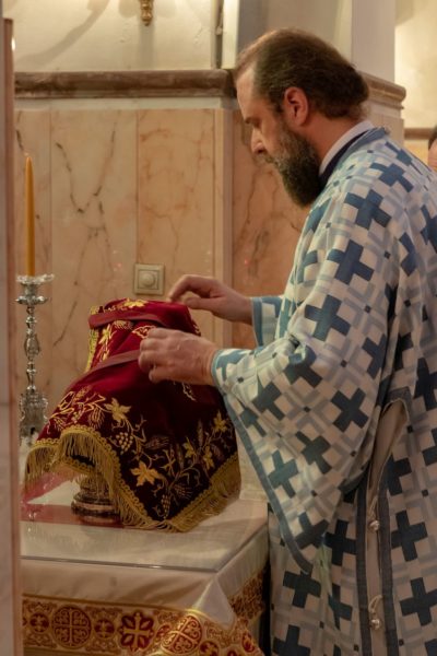 Με ιεροπρέπεια, λαμπρότητα, υποδειγματική τάξη και υπακοή στα υγειονομικά μέτρα, τελέστηκε η Πανηγυρική Αρχιερατική Θεία Λειτουργία, της οποίας προέστη ο Θεοφιλέστατος Επίσκοπος Ωρεών κ. Φιλόθεος, Αρχιγραμματέας της Ιεράς Συνόδου της Εκκλησίας της Ελλάδος, πλαισιούμενος από του συνεφημερίους του Ιερού Ναού και άλλους κληρικούς, επί τη μνήμη του Αγίου Μεγαλομάρτυρος Δημητρίου του Μυροβλύτου.