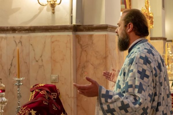 “Ευλογημένοι μου αδελφοί, συναχθήκαμε και σήμερα προς τιμήν του Αγίου ενδόξου Μεγαλομάρτυρος Δημητρίου του Μυροβλύτου, του θαυματουργού Αγίου της Εκκλησίας μας, το όνομα του οποίου τιμάται αυτός ο Ιερός Ναός και την χάρη και τη βοήθεια και τις ικετευτικές πρεσβείες του οποίου επικαλούμαστε, όσοι ήρθαμε σήμερα ανάξιοι προσκυνητές του.