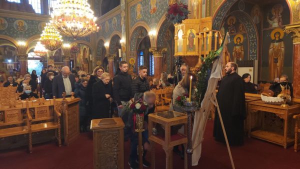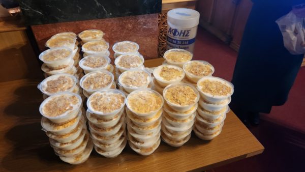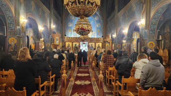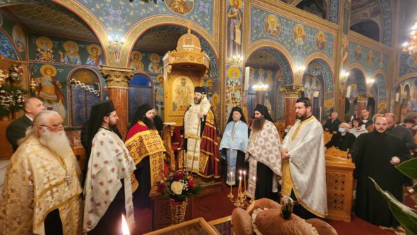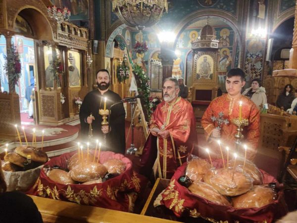 Κατόπιν μέχρι λίγο μετά τα μεσάνυχτα από τις 20:00, τελέσθηκε ιερά αγρυπνία από τους εφημερίους του ναού, πρωτοπρεσβύτερο Ιωάννη Μεταξά και πρεσβύτερο Βασίλειο Ταξιαρχιώτη. Στο τέλος διανεμήθηκε γλύκισμα πρός όλους προσφορά της Πόπης Κλακέα.