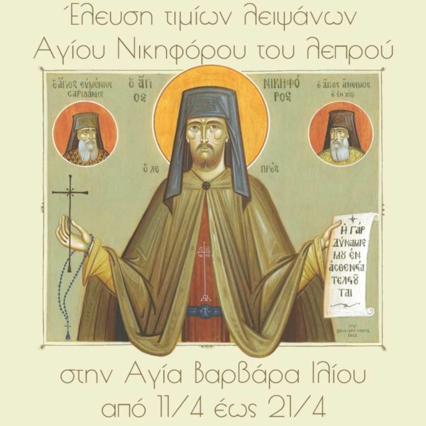 Η ενορία της Αγίας Βαρβάρας Ιλίου υποδέχεται τα τίμια λείψανα του νέου Αγίου Νικηφόρου του λεπρού από την Πέμπτη 11 Απριλίου έως την Κυριακή 21 Απριλίου 2024.