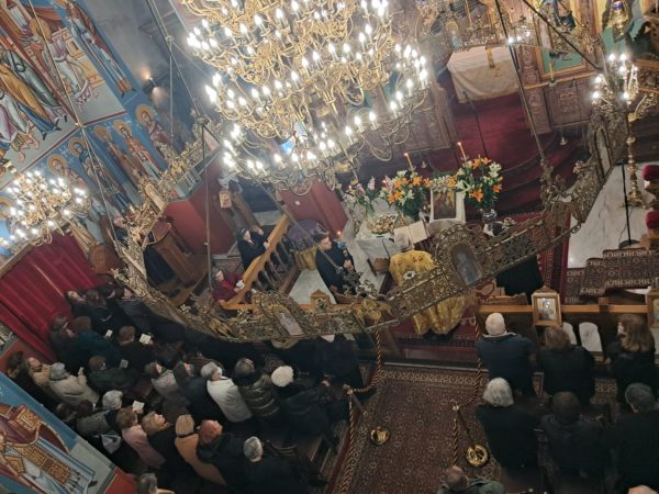 Το Τίμιο Ξύλο το υποδέχθηκαν οι Ιερείς του Ναού και ευσεβείς ενορίτες και προσκυνητές. Στη συνέχεια, τελέστηκε η ακολουθία της Γ΄Στάσης των Χαιρετισμών της Παναγίας.