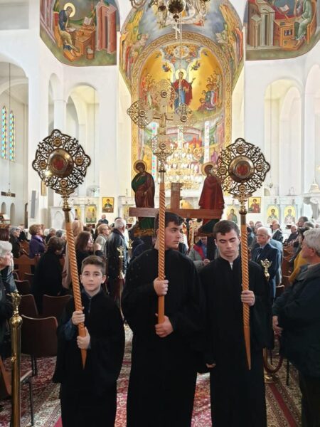 Προ της Απολύσεως της Θείας Λειτουργίας, εκ μέρους των Πατέρων του Ναού ο π. Μακάριος μίλησε για τον θρίαμβο της Ορθοδοξίας και για την ημέρα κατά την οποία η Αγία μας Εκκλησία τιμά την αναστήλωση των Ιερών Εικόνων ύστερα από την μακρά περίοδο της Εικονομαχίας ενώ κατά την τάξη της Αγίας μας Εκκλησίας πραγματοποιήθηκε λιτάνευση των Ιερών Εικόνων πέριξ του Ιερού Ναού και αναγνώσθηκε το Συνοδικό της Ορθοδοξίας. Στο τέλος, άπαντες έψαλλαν υπερήφανα τον εθνικό μας ύμνο!