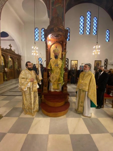 Με λαμπρότητα εορτάστηκε στην Ιερά Μητρόπολη Θήρας η ανάμνηση της θριαμβευτικής εισόδου του Κυρίου στα Ιεροσόλυμα. Ο Μητροπολίτης Θήρας, Αμοργού και Νήσων κ. Αμφιλόχιος προέστη των ιερών ακολουθιών στον Ιερό Ενοριακό Ναό Ευαγγελισμού της Θεοτόκου Εμπορείου, όπου χοροστάτησε στον Όρθρο της εορτής, ανέγνωσε την διατεταγμένη ευχή των βαΐων και ιερούργησε τη Θεία Λειτουργία, κατά τη διάρκεια της οποίας κήρυξε το Θείο Λόγο προς τους πιστούς.