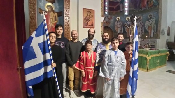Αμέσως μετά την θεία Λειτουργία τελέστηκε Δοξολογία από τους Πατέρες του Ναού, οι οποίοι στο τέλος μαζί με τον ευσεβή λαό έψαλλαν τον Εθνικό Ύμνο και τραγούδησαν το γνωστό εμβατήριο «Μακεδονία ξακουστή…», με τις παιδικές φωνές στέλνοντας το μήνυμα της ελπίδας και της διαφύλαξης της πολύτιμης παρακαταθήκης των προγόνων.