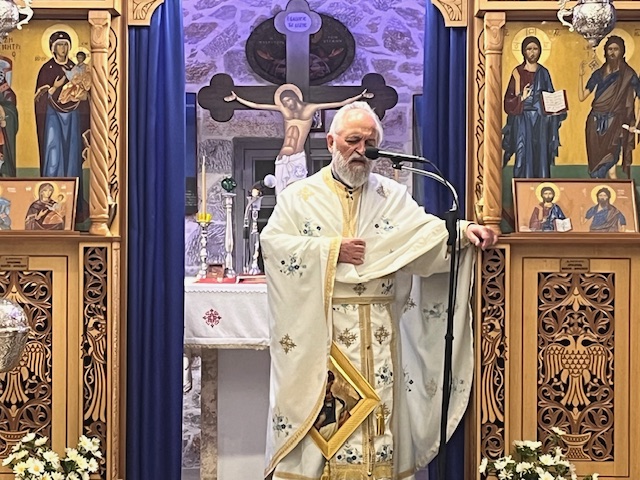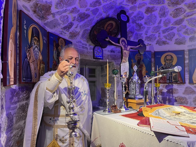 Ιερουργός ήταν ο Πρωτοπρεσβύτερος π. Νικόλαος Αργυρίου, Προϊστάμενος του Ιερού Ναού Αγίου Παντελεήμονος Λουτρών Αιδηψού, ενώ συμπροσευχόμενος ο Πρωτοπρεσβύτερος π. Χρήστος Νγκέλας.