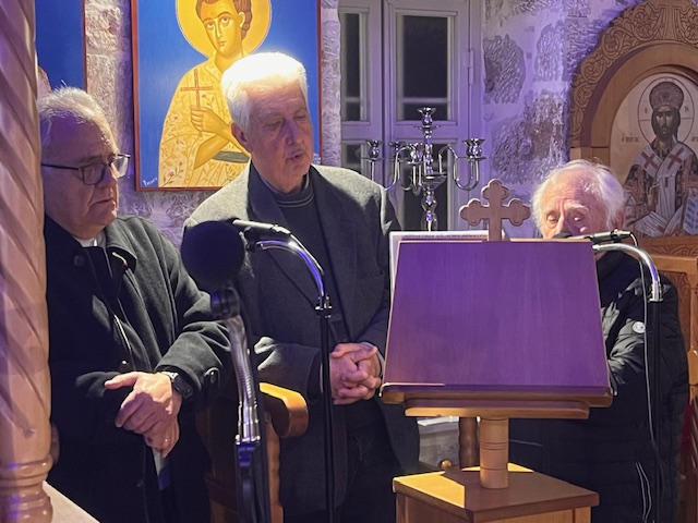 Στο Ιερό Αναλόγιο έψαλαν ο κ. Δημήτριος Παπαβασιλείου,πρωτοψάλτης του Ιερού Ναού Αγίου Παντελεήμονος, ο κ. Δημήτριος Γεωργουλας , ο κ. Ευάγγελος Καζάνης και ο Αναγνώστης Θωμάς Χαντζής, αποδίδοντας με εκκλησιαστική ευπρέπεια και κατανυκτικό ύφος τους ύμνους της εορτής.