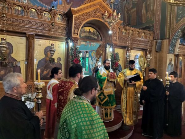 Το μέγα εσπερινό τέλεσε ο πρόεδρος της κοινότητος αρχιμανδρίτης Σεραφείμ Δημητρίου, ενώ στον όρθρο χοροστάτησε και ιερούργησε την Θεία Ευχαριστία ο επίσκοπος Μελόης Αιμιλιανός, ιεράρχης του Οικουμενικού Πατριαρχείου, συμπαραστατούμενος από τους αρχιμανδρίτας Αθανάσιο Σφουγγάρο, Διονύσιο Λαζαρίδη, Συμεών Συναδινό, Ευλόγιο Αντωνέλλο, τον οικονόμο Γεώργιο Βάρσο και τον διάκονο Χρυσόστομο Κρητικό.